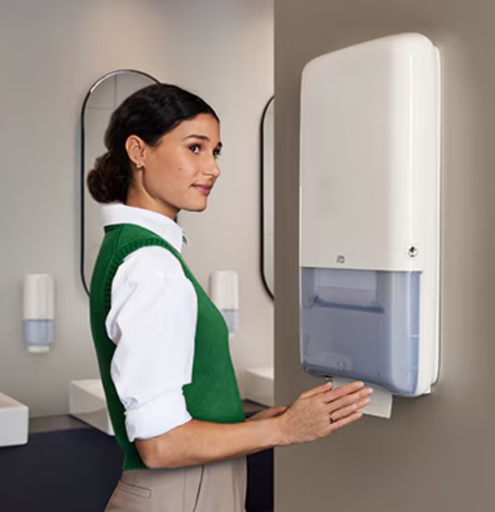 Почистващият персонал може да зарежда дозаторите по всяко време, за разлика от повечето системи с кърпи на ролка, които изискват да се използва цялата ролка преди подмяна. Това елиминира ненужните посещения за проверка на консуматива в санитарните помещения